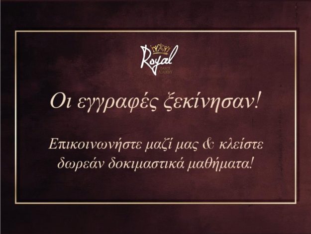 Οι εγγραφές ξεκίνησαν! Μπορείτε να επικοινωνήσετε καθημερινά με τη Γραμματεία της Ακαδημίας μας στο τηλέφωνο 2313 075 888, για να ενημερωθείτε για τα νέα προγράμματα των μαθημάτων χορού της Ακαδημίας μας & να κανονίσετε δωρεάν δοκιμαστικά μαθήματα σε τμήματα της επιλογής σας! Έναρξη μαθημάτων: 01/09