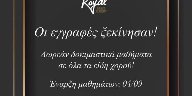 • ROYAL OPEN AUDITIONS • Διεκδίκησε κι εσύ τη θέση σου στις αγωνιστικές μας ομάδες και γίνε μέλος της μεγάλης χορευτικής μας οικογένειας! • Αγωνιστικές ομάδες All Ladies Latin – Σύγχρονου χορού – Hip Hop όλων των ηλικιακών κατηγοριών (Juvenile, Junior, Youth, Adult) • Μπορείς να μας καλέσεις για να ενημερωθείς για τις ακριβείς μέρες…
